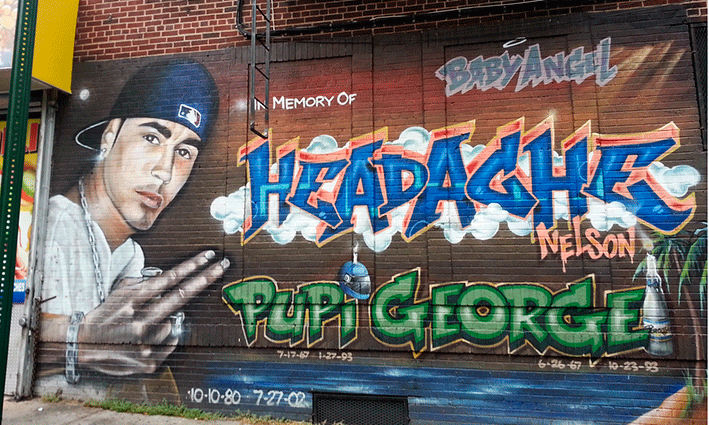 El hermano acabó en la cárcel, sí, pero la novia de Nelson acabó en el mismo sitio que él 4 años después, pues tras colaborar para la detención del resto de los implicados, acabó llevándose otro balazo. El mural está en Elder Avenue, justo en el cruce con Watson y al lado de Nunez Cousins Grocery. La parada de Metro más cercana es Elder Ave (Linea 6, verde) y hay que caminar una manzana.