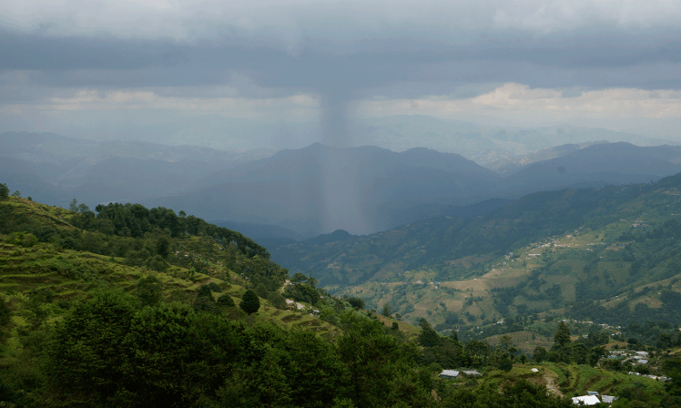 Hay que tener en cuenta que no hay línea directa desde Katmandú a Nagarkot, primero hay que ir hasta Bhaktapur y avisar al chico que va en la puerta del autobús de que queréis ir después a Nagarkot, él os dirá que bajéis en el punto exacto desde donde salen los autobuses. Es otra hora más de trayecto por caminos (que no carreteras) de montaña, sin quitamiedos ni asfalto… así que preparáos para la aventura. Si no tenéis la suerte de que esté despejado, se puede dar una vuelta por el pueblo, sobre todo por la zona más elevada y tener unas vistas preciosas de la otra parte del valle.