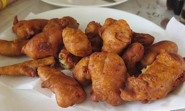 No hay nadie a quien no le guste este plato. Habamos de verduras, queso o pollo (eso a decisión de cada uno) que se rebozan en harina de garbanzo y después se fríen. Algo así como unos fingers indios.