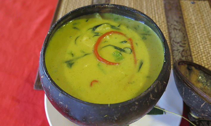 El plato estrella es el Amok, un delicioso curry muy suave y con mucha leche de coco, verduras y hojas de banana. Lo hay de pollo, cerdo, ternera y tofu, pero el mejor sin duda es el de pescado.