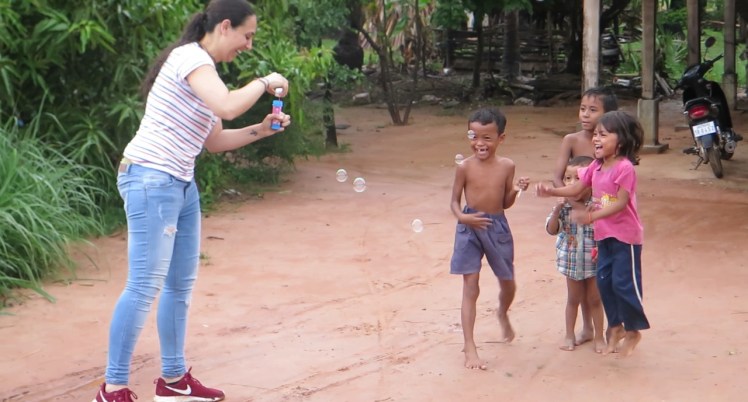 Los niños más guapos del mundo, así os lo digo: Miradas vivas y sonrisas permanentes. Los momentos más emocionantes del viaje nos los regalaron ellos. En nuestro trayecto a Beng Mealea, pasamos por varios poblados y en cuanto veíamos un grupo de niños, le pedíamos a Bunrat que parara y les dábamos caramelos que habíamos traído de España, aunque la estrella fueron los pomperos… saltaban de alegría.
