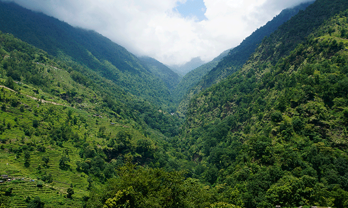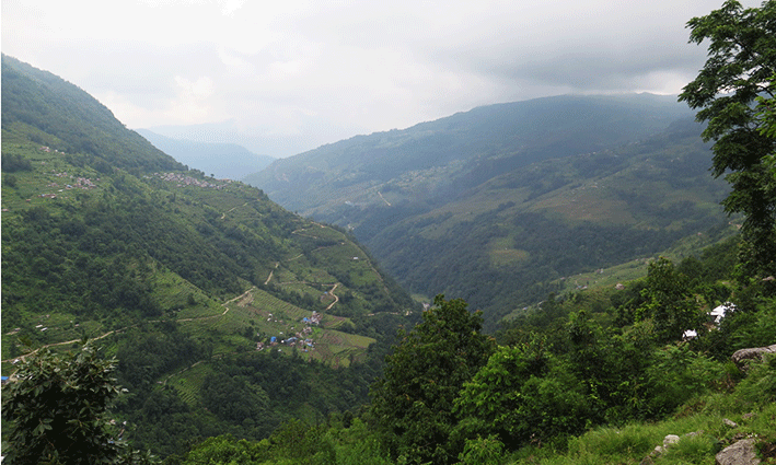 Aun así trataba de continuar… pero estaba que echaba el hígado y hasta me planteé abandonar. Si en teoría eso era la etapa más fácil ¿aguantaría el resto? En serio, me las ví muy muy crudas pero con constancia y paciencia, llegamos a Tikhedhungga, y saludamos a la amiga que nos había comentado el recepcionista. Allí hicimos un descanso largo, bebimos agua fresca y comimos plátanos, cacahuetes y unas barritas energéticas aún a riesgo de liarla más estomacalmente hablando, pero necesitábamos energía ipso facto. Me repuse y continuamos.