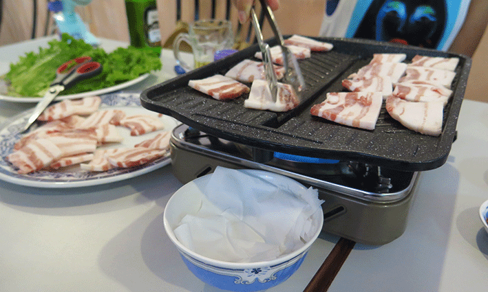 Después de ducharnos como es debido, descansar, hacer alguna compra y reorganizar maletas, sobre las 7 vineron Woo Ri y su monitor de parapente a nuestro hotel. En señor era un hombre interesantísimo de Manchester y compartimos con ellos una deliciosa barbacoa coreana en un restaurante de nuestra misma calle amenizando la cena con anéctodas y viencias de todos nosotros a lo largo y ancho del mundo.