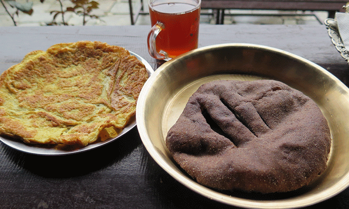El despertador sonó a las 9:00 y las agujetas no nos permitían mover las piernas con normalidad. Bajar cuesta menos, pero el cuerpo se resiente más. Hari Maya nos había preparado el desayuno que le encargamos el día de antes: un chapati con huevos fritos y té al limón, por un lado y té masala, huevos revueltos y un pan gurung por otro. Este pan es el típico de la zona y es ligeramente dulce.