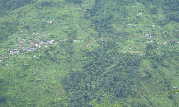 Emprendimos la bajada hasta Kimche por una pista por donde también circulaban ya otros vehículos… Nuestra idea inicial era llegar hasta Nayapul y coger el taxi allí, pero teniendo en cuenta que era el mismo precio hasta Pokhara y la paliza que llevábamos encima andando como Robocop, nos decantamos junto a Woo Ri por acortar el camino poniendo fin en Kimche. Aunque a los lados podíamos ver colinas y terrazas de arroz de un verde fosforito, el camino en sí era más urbano y el menos bonito del recorrido.