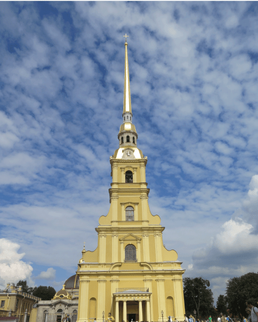 Al terminar la visita cruzamos para ver la Iglesia de San Pedro y San Pablo, que estaba en obras pero nos ofreció la posibilidad de ver en vivo una boda ortodoxa que se estaba celebrando. Regresamos al centro haciendo una breve parada para visitar el Arco del Triunfo de Narva. Continuamos la ruta por metro y visitamos el exterior de la mezquita de la ciudad mientras tomábamos unos blinis salados camino a la Fortaleza de San Pedro. Allí compramos la entrada combinada para visitar la iglesia, donde se encuentran las tumbas de los Romanov, la cárcel, la Casa del Comandante y el Museo de la Cosmonáutica. Una visita muy muy interesante.