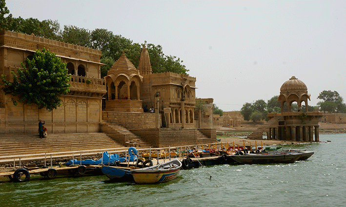 El lago Gadisar: Es una reserva de agua construída en el siglo XIV para abastecer completamente a la ciudad, cosa que hzo hasta 1965. El lago está rodeado de traqnuilos y casi desiertos altares, templosy ghats. Además, también se puede alquilar una barca de pedales como plan alternativo.