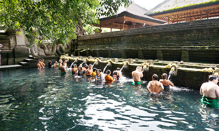 Pudimos llegar sin problema al templo de Gunung Kawi, cuyo entorno disfrutamos más que el templo en sí, y después al de Tirta Empul, donde participamos del ritual típico purificándonos en sus piscinas.
