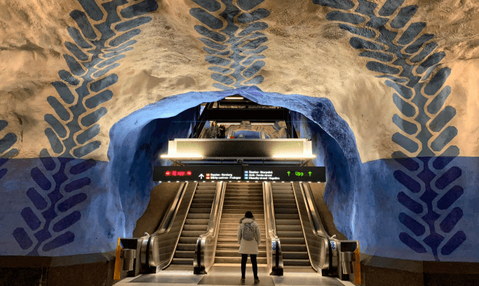 Metro: Estocolmo tiene un sistema de metro de lo más peculiar con estaciones que parecen pequeñas galerías de arte moderno. El billete sencillo vale… y uno sería suficiente para recorer las más destacadas.