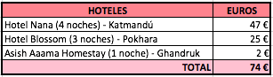 Teniendo en cuenta todo lo anterior, sin contar vuelos ni seguro, nuestros 10 días en Nepal nos costaron 446,10€, es decir, 223,05€/ persona.