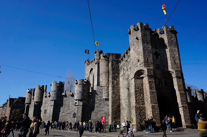 Una impresionante y bien conservada fortaleza rodeada de agua donde vivían los Condes de Flandes durante su estancia en la ciudad, aunque también fue palacio de justicia, prisión y escenario de innumerables castigos y ejecuciones públicas. De hecho, hoy día alberga una exposición con instrumentos de tortura de la época.