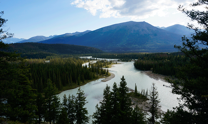 Despertamos en nuestra cabaña de madera y rápido pusimos rumbo a Jasper. Por el camino disfrutamos de las vistas del impresionante Monte Robson, una maravilla. Ya en Jasper, hicimos un picnic junto a Pyramid Lake, nos refrescamos en Patricia Lake y empezamos a la tarde haciendo el trail Valley of the Five Lakes, al sur de la ciudad. Todo nos pareció precioso y pusimos la guinda subiendo al atardecer a Old Fort Point, con unas vistas magníficas.