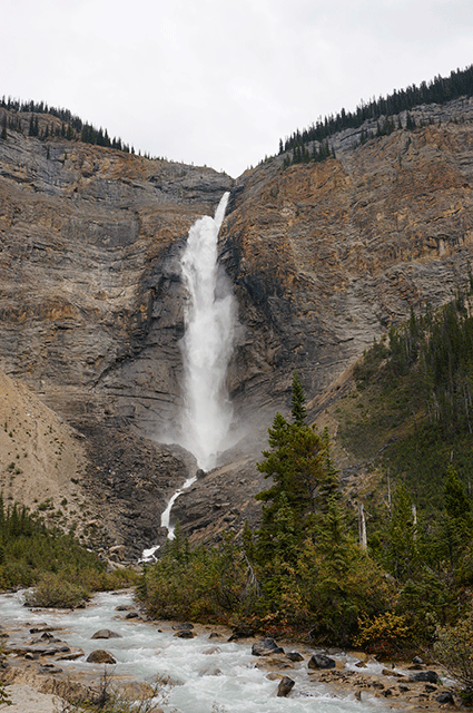 Después de un tiempo increíble en nuestros primeros días, nuestra estancia en Yoho pintaba nublada y lluviosa, pero de momento ese día el tiempo aguantó… ¿Quizá por que era mi cumpleaños? Empezamos por el archifamoso Emmerald Lake, un lago de ensueño que ese día no lucía su color en todo su esplendor por el cielo encapotado, pero igualmente nos gustó mucho. Muy cerca, visitamos también Natural Bridge, Meeting of the Waters, Spiral Tunnels y Takkakaw Falls, lo que más nos gustó del día sin duda.