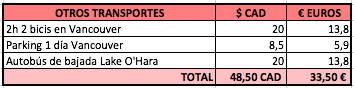 ¿No os lo creéis? A continuación os muestro de forma detallada lo que nos costó este viaje de 14 días para dos personas por Vancouver y las Rocosas Canadienses.