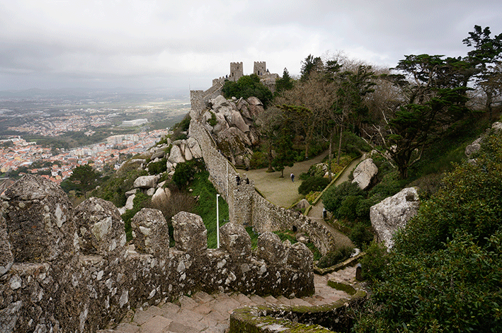 En mi caso, visité la Quinta de Regaleira andando desde la estación y después subí al Castelo dos Mouros atravesando el Parque das Merendas por la ruta de Vila Sassetti, un recorrido interesante a través de senderos que terminé en el Palacio da Pena, donde cogimos el autobús de vuelta al centro huyendo de una horrorosa tormenta que se desató y ahorrándonos un buen paseo.