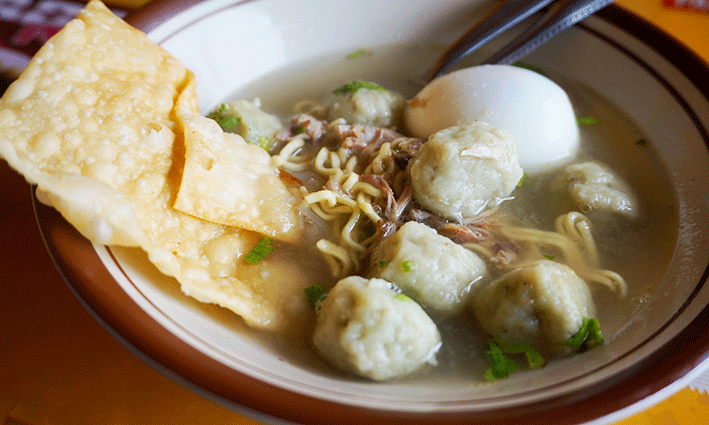 Puede que uno de mis platos favoritos. No os imagináis lo que es que, en un país tropical, ir subiendo montañas en moto, que baje muchísimo la temperatura e incluso llueva y encontrarte un puesto que sirve sopita casera. Eso es el bakso ayam: sopa de pollo y verduras con fideos, pelotas de carne y huevo duro (a veces incluso el huevo duro está dentro de una de las pelotas de carne).