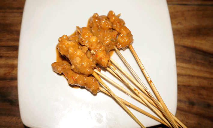 Un plato estrella que gusta a todo el mundo. Se trata de brochetas a la parrilla del ingrediente que prefieras (pollo, cerdo, ternera, calamares, gambas…) previamente marinadas en cúrcuma.