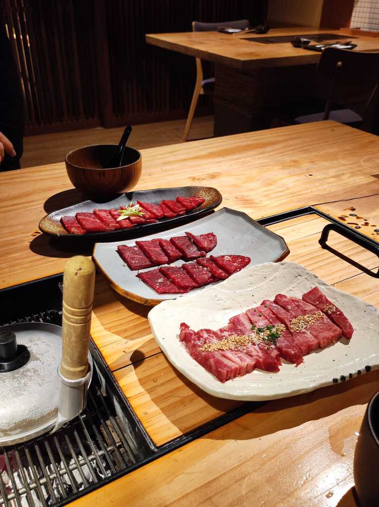 Comer cocinando o terminando el plato en tus propias brasas al estilo japonés es ya toda una experiencia. El ambiente era súper envolvente, el personal muy atento y la comida, muy especial. Nos sacaron distintos platos como sopa, gyozas, yakisoba, gambas y hotpot de verduras y setas antes de pasar a los distintos cortes de carne. Todos estaban exquisito pero sin duda me quedo con el Wagyu Karubi, que son cortes de la parte de pecho de esta raza japonesa tan codiciada: No he probado carne igual en mi vida, mantequilla pura.