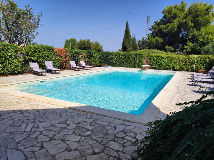 - Ceglie Messapica: Puglia es una zona costera vacacional muy popular entre el turismo nacional, por lo que el alojamiento es caro en verano y a esas alturas, casi todo estaba reservado. Nosotros queríamos centrarnos más en pueblos que en playa, así que reservamos más al interior (en Ceglie Messapica) pero a pocos kilómetros de varios pueblos turísticos y de la costa. En esta ocasión, buscábamos algo con piscina y lo encontramos en Villa Adelaide, un chalet a las afueras del pueblo. Nos tocó un anexo independiente en el patio, sólo para nosotros con salida directa a la piscina, aire acondicionado, nevera, TV y baño propio. Un oasis en medio de ese secarral. Fue el alojamiento que más nos gustó, además se alojaban en él los dueños y un par de familias extranjeras con las que coincidimos en la piscina. 2 noches por 130€.