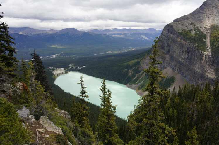 - Big Beehive: Aproximadamente a los 2km de vuelta desde Plain of the 6 Glaciers, está la “tea house” o casa del té. Desde ahí puedes regresar al lago o continuar subiendo en una ruta serpenteante y con mucha elevación hasta el Big Beehive, dede donde tendrás unas vistas alucinantes del lago desde las alturas. Si aún os queda tiempo, y sobre todo FUERZAS, para más, podéis seguir subiendo hasta el conocido como Devil’s Thumb. De vuelta hacia el lago por el lado contrario a la subida, pasaréis también por los lagos Agnes y Mirror, muy bonitos también. Si sólo queréis ver estos últimos sin la paliza de kilómetros y tanta elevación anterior, también hay un trail desde el lago Louise que sube directo.