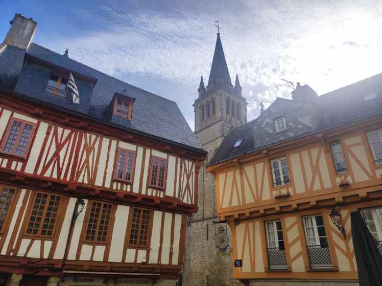 Despertamos en nuestro apartamento en una zona residencial de Vannes, y tras recoger, fuimos al centro aparcando gratis en parking des Lices. Desde allí fuimos andando pasando por los jardines junto a la muralla y los lavaderos y parando a desayunar en el mercado de Les Halles, donde hay multitud de puestos locales. Continuamos la ruta por la Place des Lices hasta la Catedral de Saint Pierre de Vannes (gratuita y muy bonita, aunque tenía parte en obras) y calles aledañas, estando todo animadísimo y lleno de locales y turistas al ser sábado.